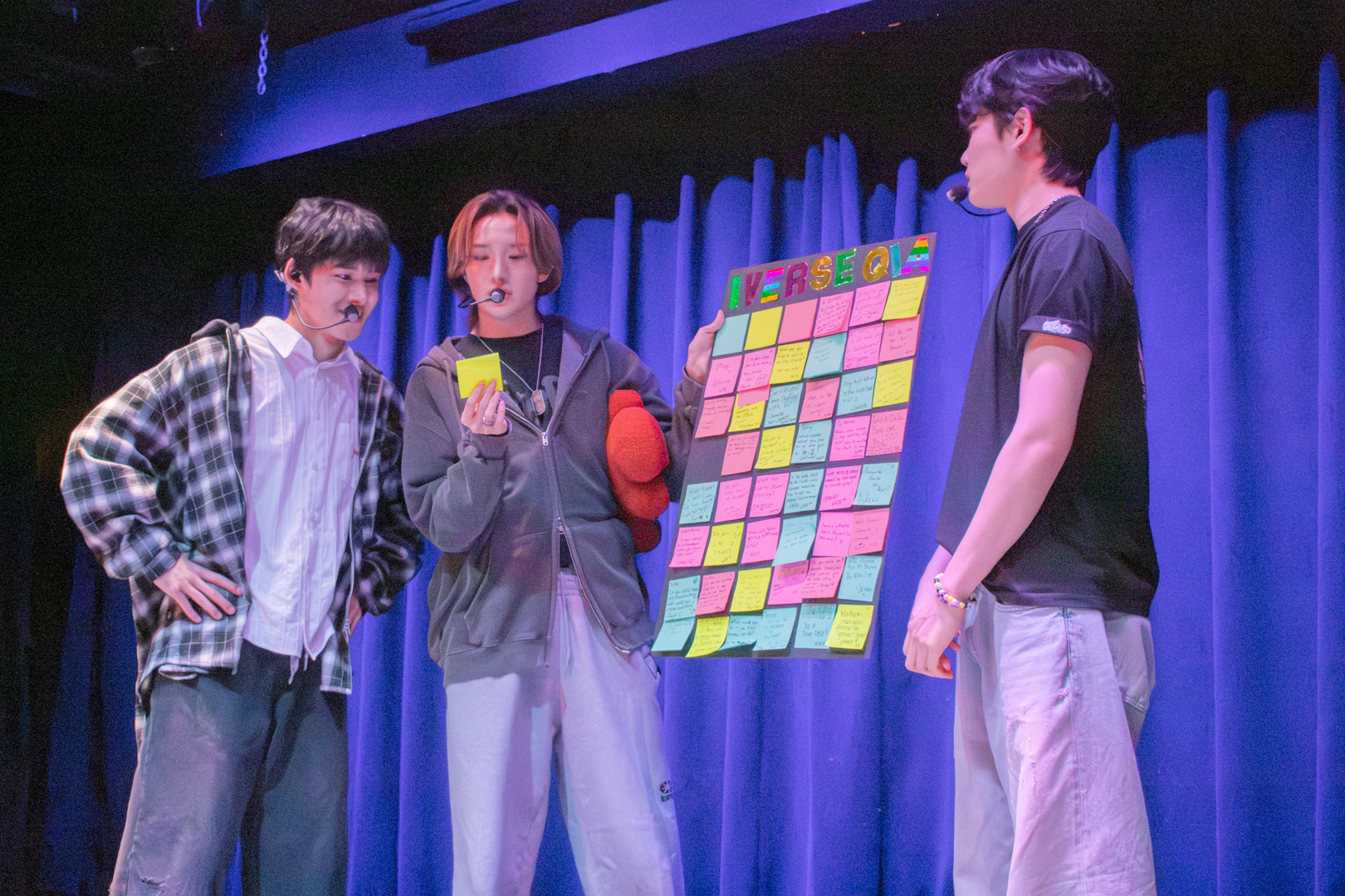 5TARZ from all over had gathered for a special night of games and performances from 1verse. People who weren’t friends before arriving at the venue bonded over their love for the same artists. Prior to the show starting, 5TARZ were able to write down questions for the members to answer during the Q&A segment of the show. The fans were also handed numbered wristbands as they entered for a special event happening later in the night. As the doors opened at 6 p.m., you could feel the energy fill the room.