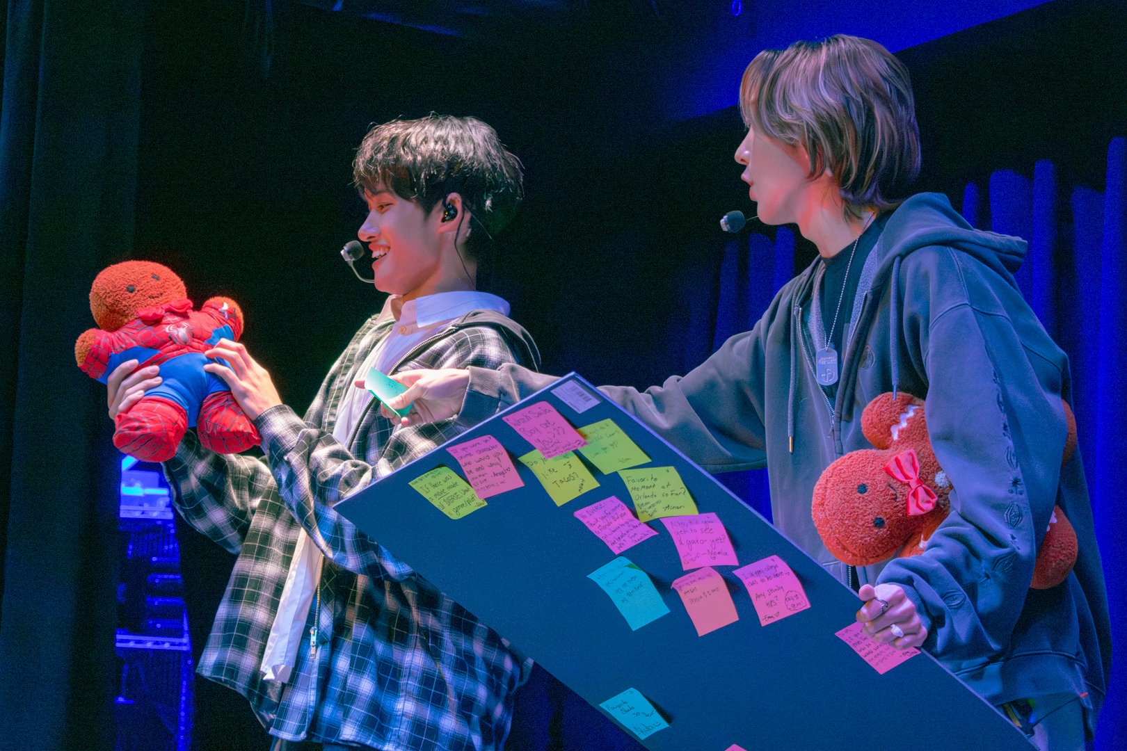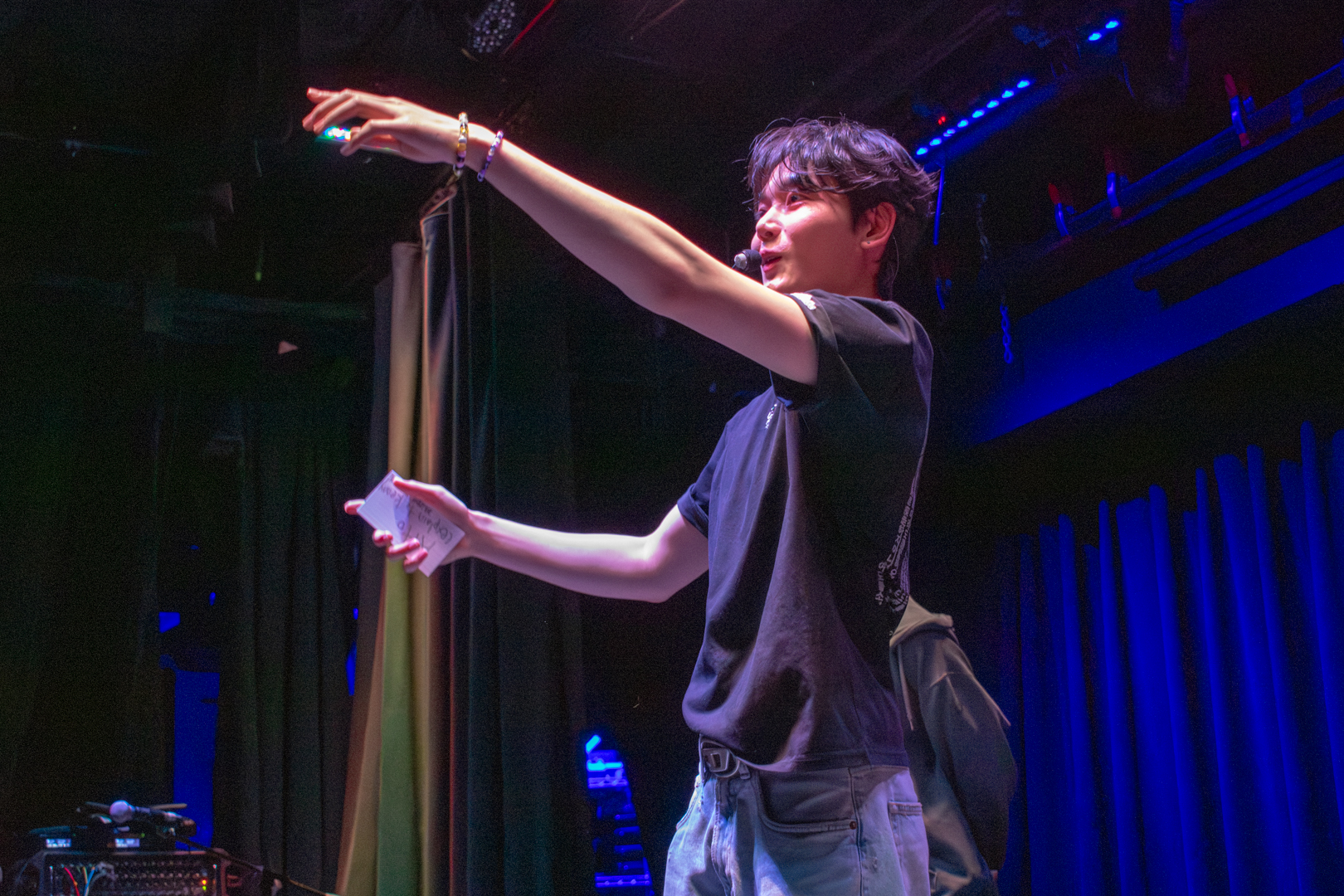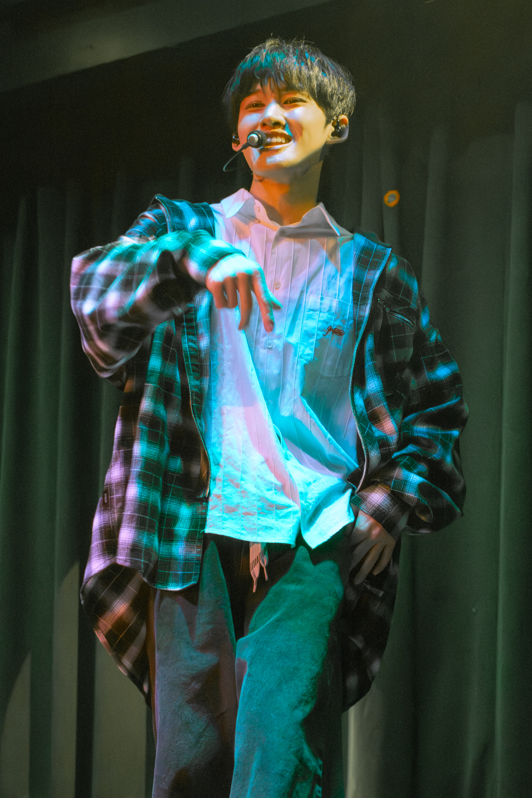 With this introduction finished, we moved into the Q&A segment. Kenny headed off stage to grab the board filled with questions written by 5TARZ themselves. The room was buzzing with everyone’s desire to possibly have their questions picked and read out by one of the members. Each member picked out questions that fit them the best. Some questions were inquiring about possible covers for later in the show, as well as some inside jokes between 1verse and 5TARZ. It was nice seeing how happy 5TARZ were as questions were read, joking and laughing with everyone in the room. The Q&A session almost turned into a massive conversation, with everyone feeling comfortable. Giggles could be heard from every corner of the room, and you could feel how loved the members were by all the 5TARZ attending that night. After the Q&A finished, the members announced that those whose questions got picked would be receiving a gift from a sponsor for the night–a local fashion brand called Hip Chic. This gift was given as a thank you to those who came out to attend the show. You could feel how appreciative everyone was, knowing that this show almost didn’t happen. Even fans who didn’t get their questions picked were hyping up those who did.