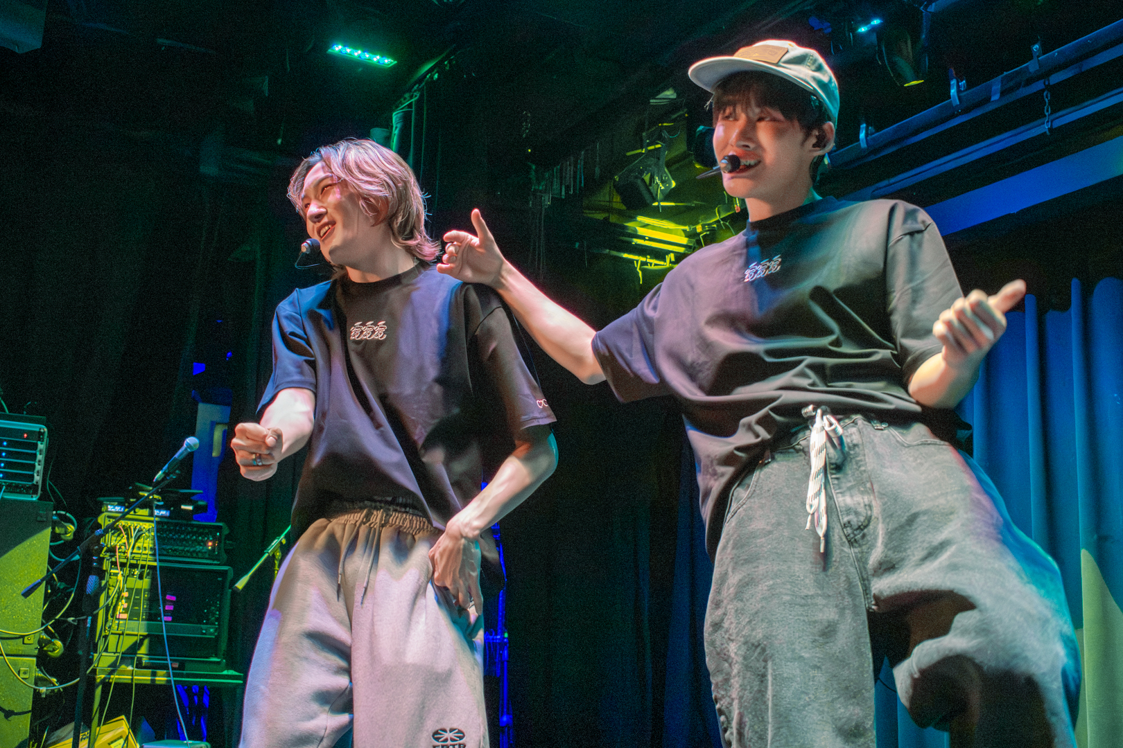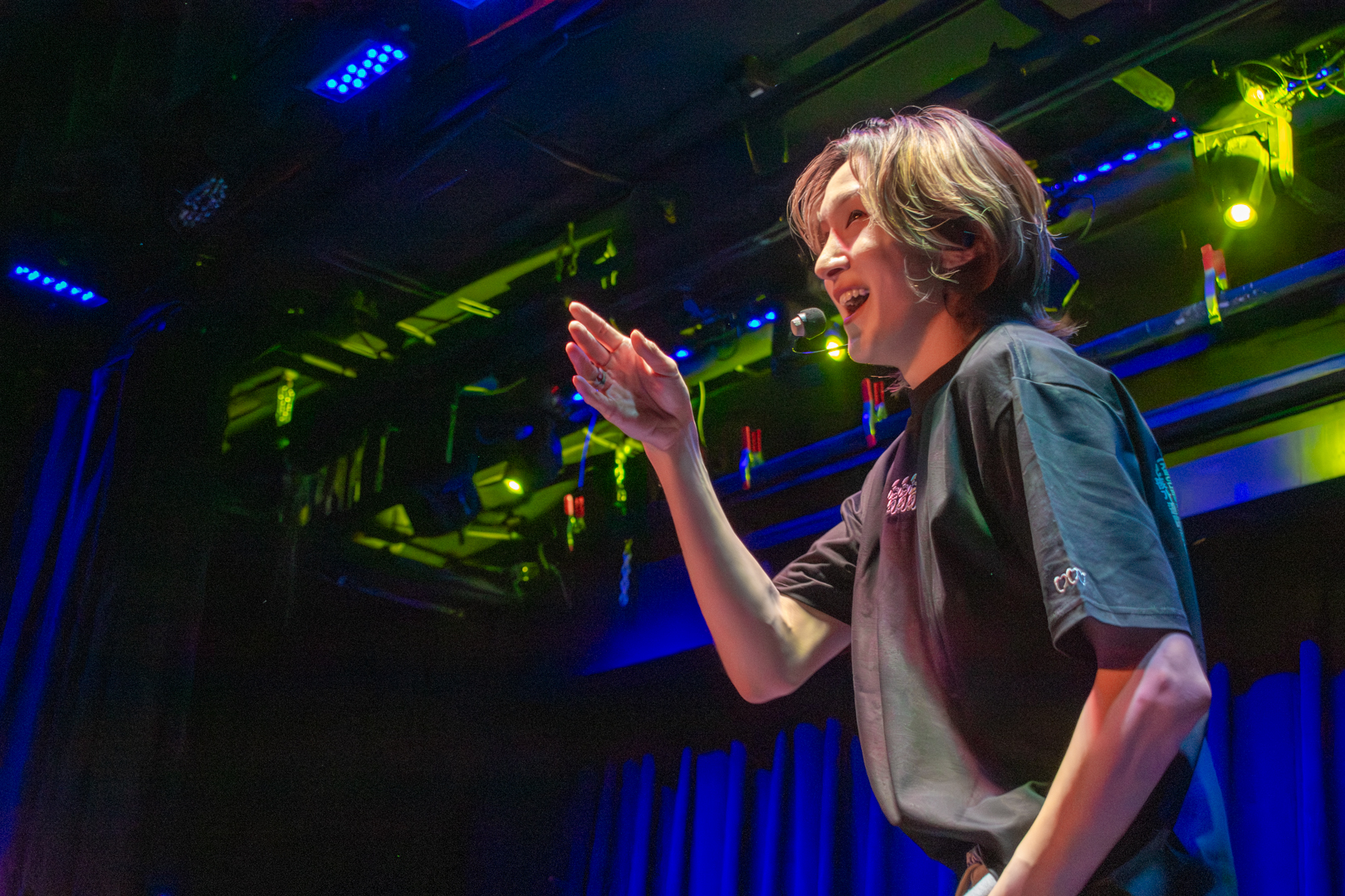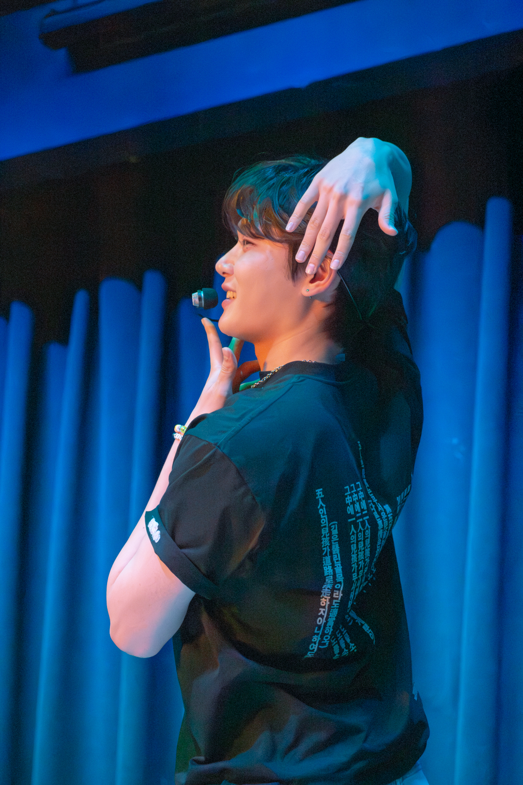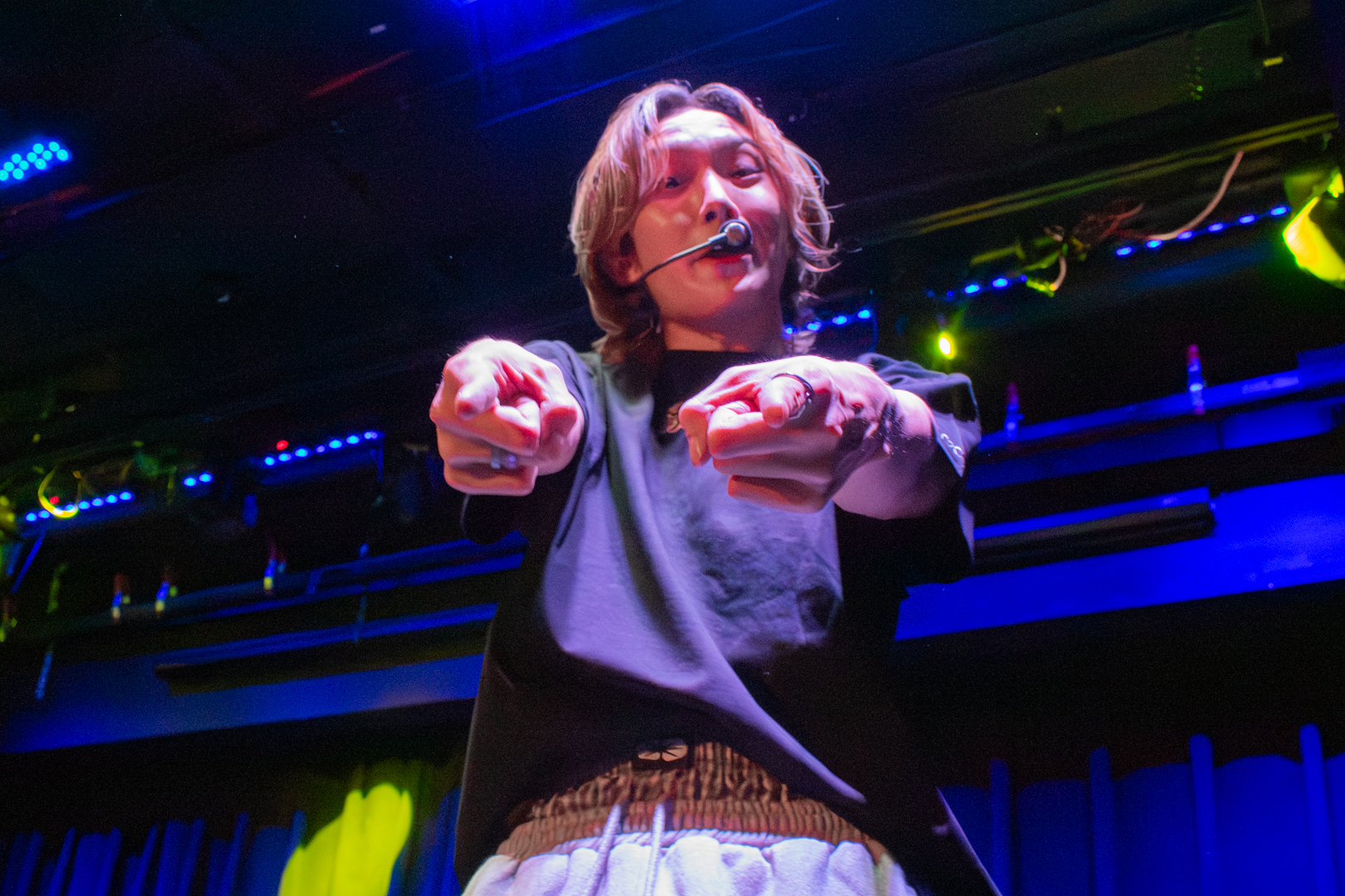 With this introduction finished, we moved into the Q&A segment. Kenny headed off stage to grab the board filled with questions written by 5TARZ themselves. The room was buzzing with everyone’s desire to possibly have their questions picked and read out by one of the members. Each member picked out questions that fit them the best. Some questions were inquiring about possible covers for later in the show, as well as some inside jokes between 1verse and 5TARZ. It was nice seeing how happy 5TARZ were as questions were read, joking and laughing with everyone in the room. The Q&A session almost turned into a massive conversation, with everyone feeling comfortable. Giggles could be heard from every corner of the room, and you could feel how loved the members were by all the 5TARZ attending that night. After the Q&A finished, the members announced that those whose questions got picked would be receiving a gift from a sponsor for the night–a local fashion brand called Hip Chic. This gift was given as a thank you to those who came out to attend the show. You could feel how appreciative everyone was, knowing that this show almost didn’t happen. Even fans who didn’t get their questions picked were hyping up those who did.