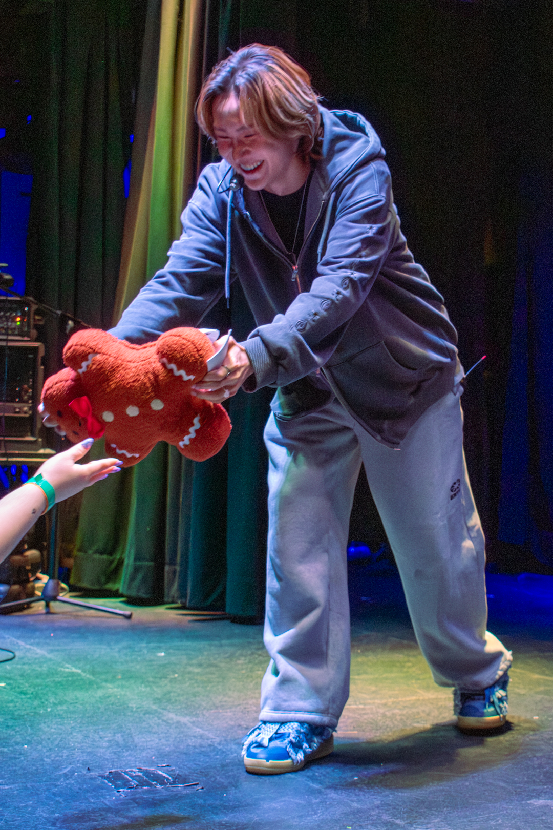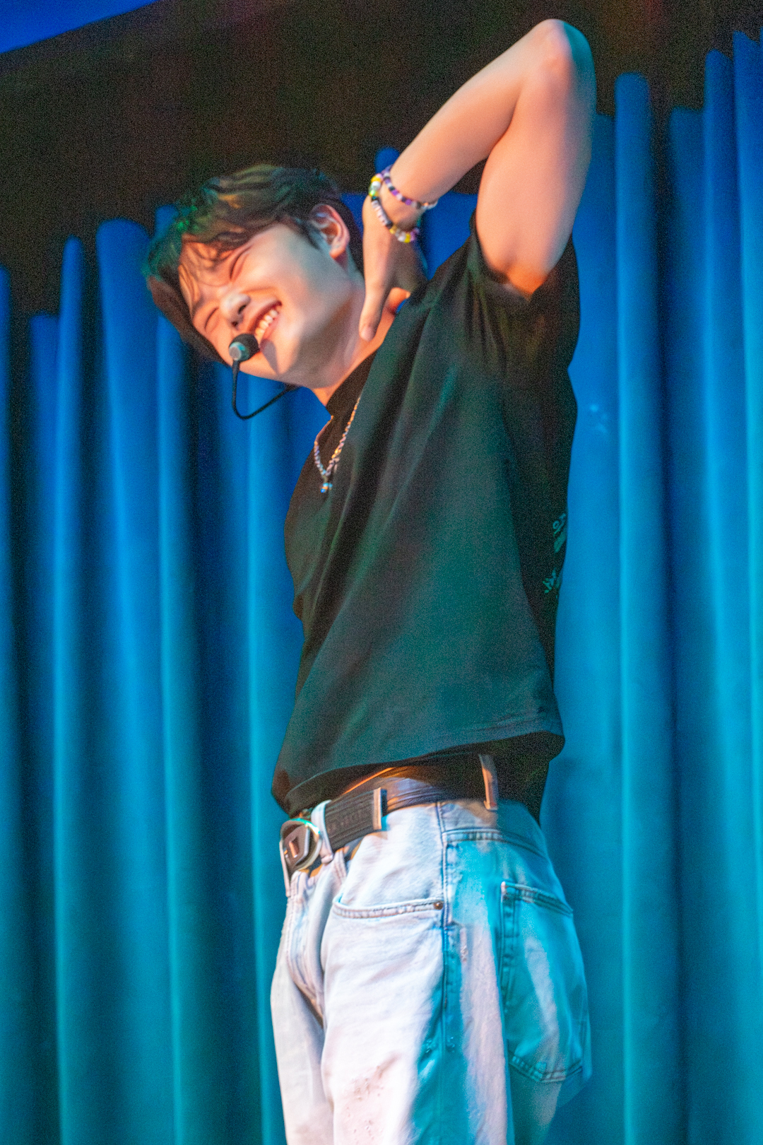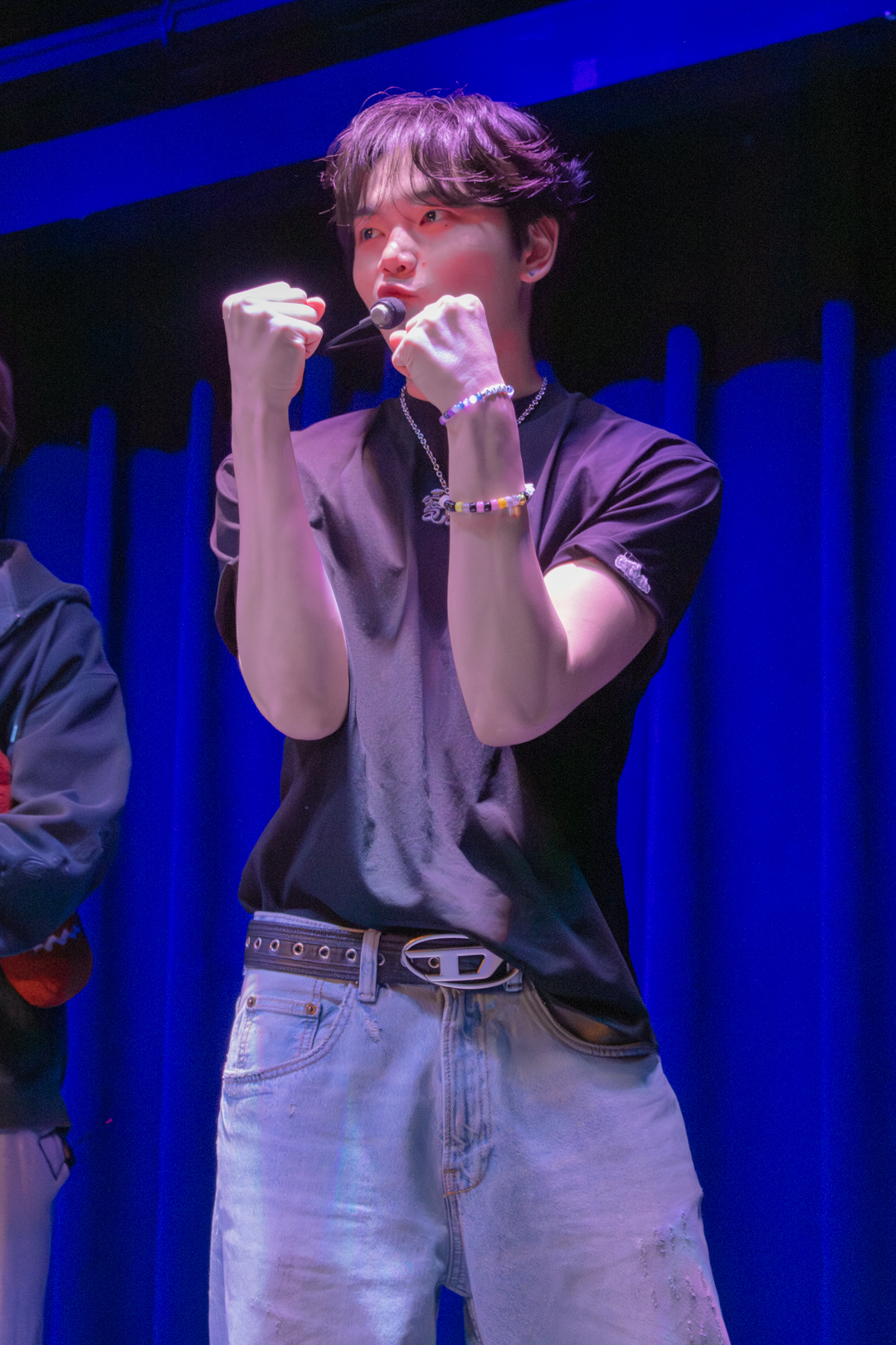 As the solo stages drew to a close, the tension continued to rise. 5TARZ got a glimpse of the next performance, and the room was electrified. The whole room was singing “Your Idol” from the hit movie K-pop Demon Hunters back to the members. This stage was exhilarating as the members’ sharp dance moves and deep voices filled the room. Picking a song from the movie that took over the whole world was a great way to bring the energy back up after a slow ballad. When the song finished, we were greeted by Aito again, giving Kenny and Nathan a moment to rest after performing five songs in a row. Because Aito could not perform, he came out for a “capture time,” giving 5TARZ the opportunity to suggest poses and take pictures while he got to chat. He was so excited to hear the cheers from fans calling him cute as he posed in various ways. He may not have been able to perform on stage with the other members, but that didn’t stop fans from making sure he felt just as loved and appreciated.