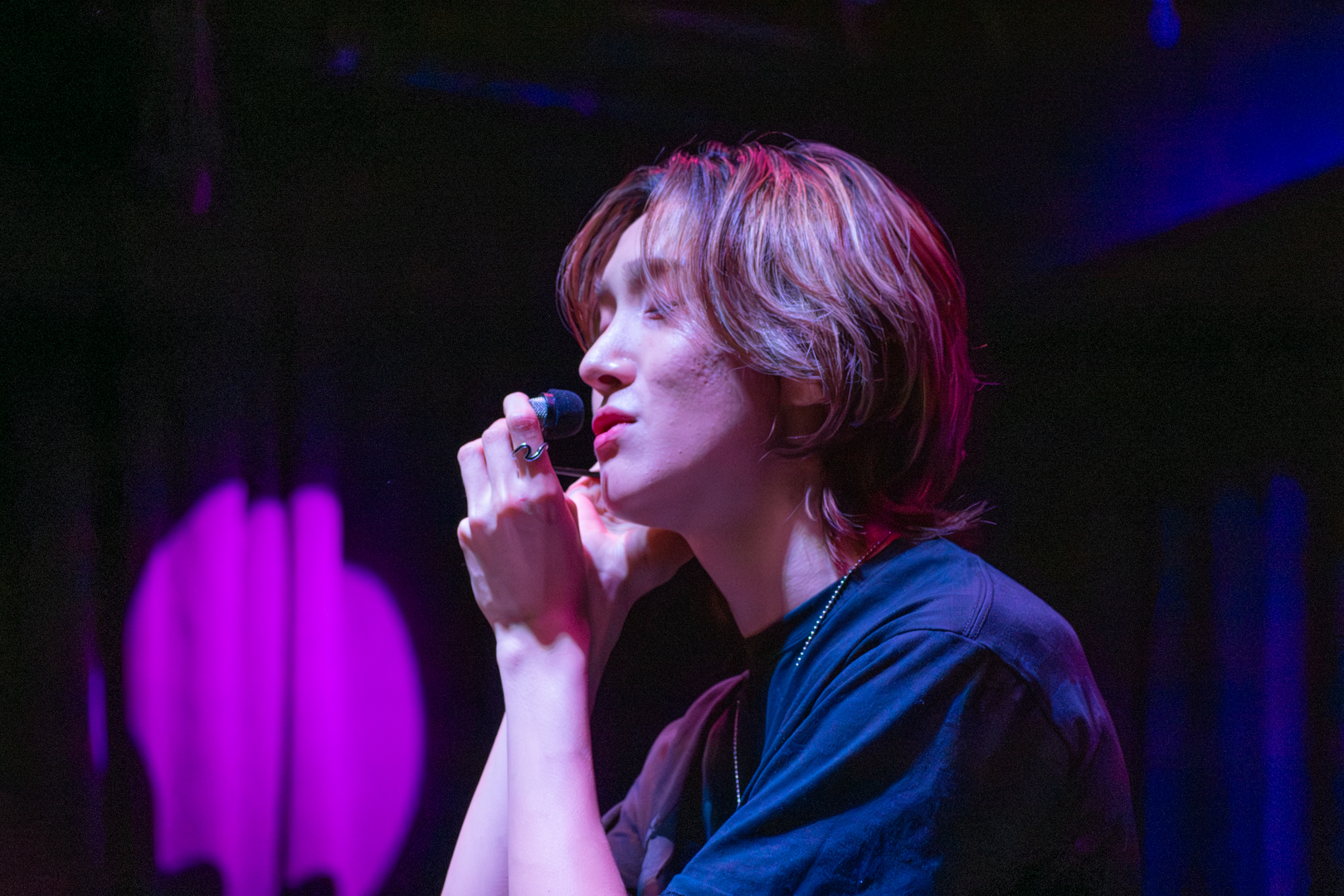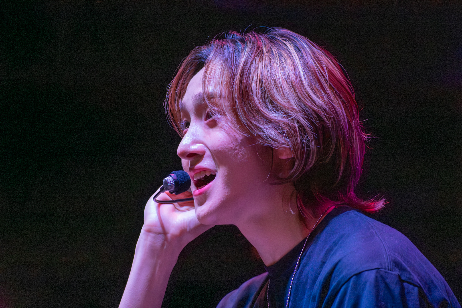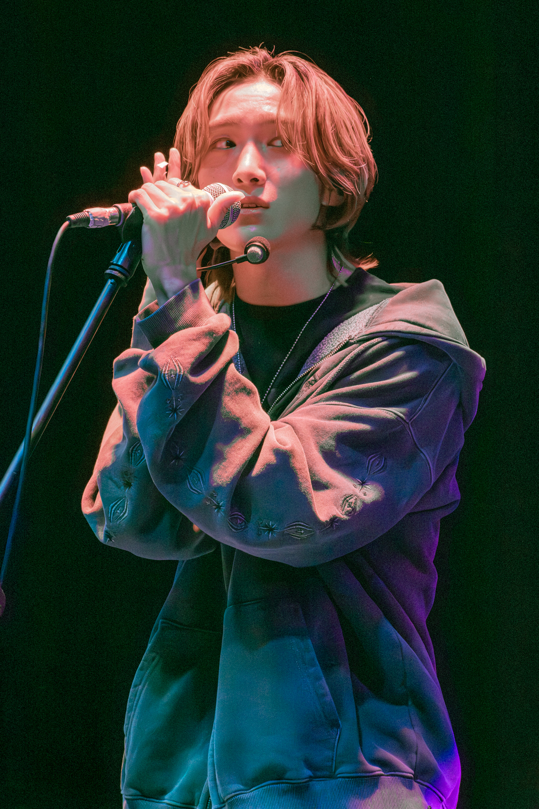 The next set of solo stages began with Nathan performing Justin Bieber’s “What do U mean?”. 5TARZ began jumping as Nathan danced around the stage. With such a dance-heavy song, it was impressive to hear such strong vocals without an ounce of strain in them. You could tell he rehearsed tirelessly to give 5TARZ a performance they’d never forget. I could feel the love radiating off not only Nathan, but 5TARZ, who traveled far and wide to get the chance to see 1verse on stage. The second solo stage was Kenny, who performed “A Thousand Years” by Christina Perri. A beautiful ballad that he sang while sitting on a stool, which made the audience feel even closer to him. Some issues came up with the handheld microphone, and the song needed to be restarted a few times, but that didn’t stop the fans from cheering him on as the audio issues were being worked out. As he switched to his headset, an overwhelming gasp of approval fell over the crowd as his soft vocals touched everyone listening. 5TARZ all began to turn on their flashlights and wave them in the air, leading Kenny to break into a big smile. Despite the audio issues, 1verse and 5TARZ could connect on a whole different level as Kenny’s vocals soothed the audience. He took a moment to really absorb the cheers coming at the end of the song, displaying his positive emotions visibly on his face. Nothing but love and appreciation could be felt, and even if you weren’t a fan before, this performance would leave you wanting more.