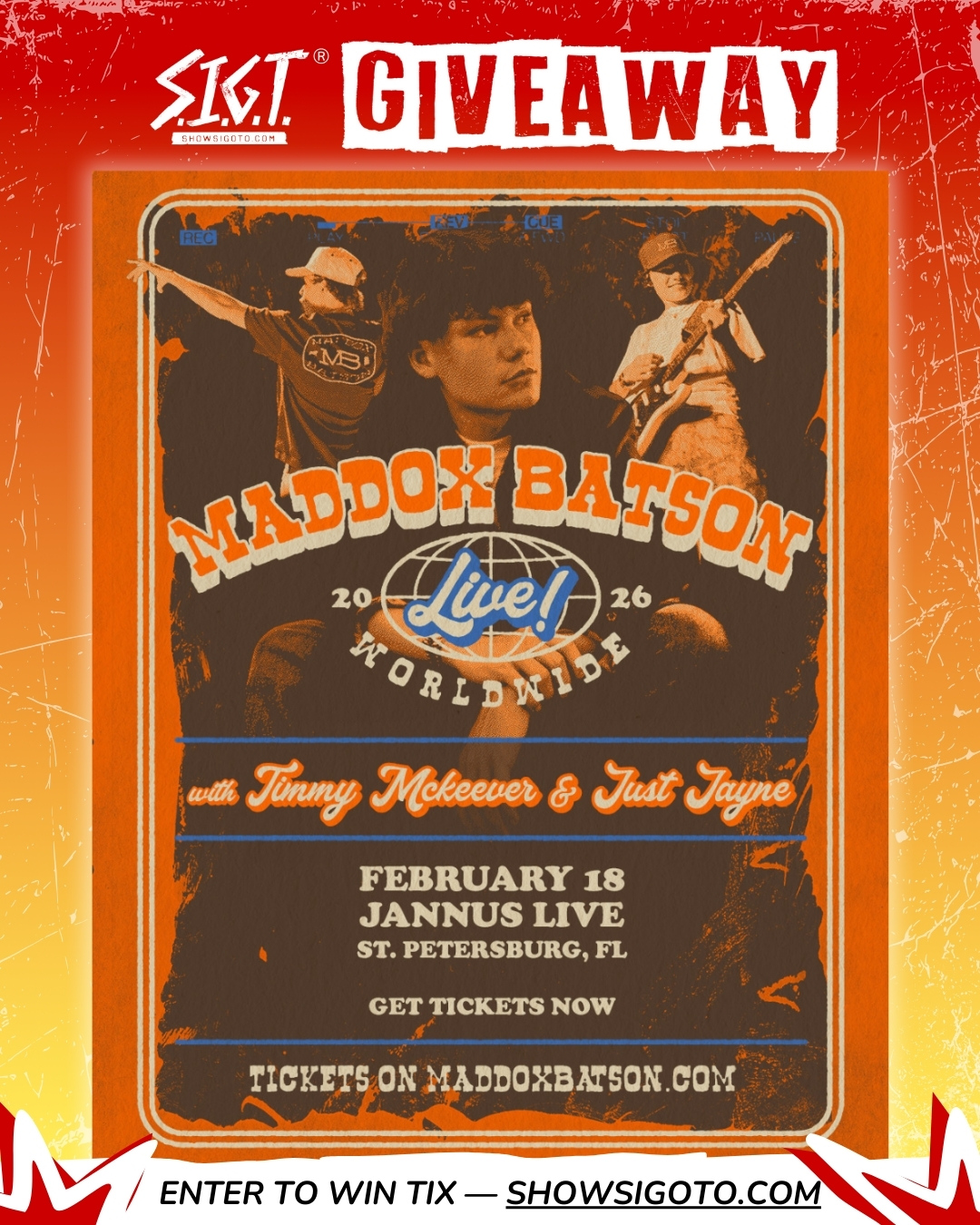We’ve teamed up with AEG Presents SE to give you a chance to WIN (2) TICKETS to MADDOX BATSON at Jannus Live in St. Pete on February 18th, 2026!