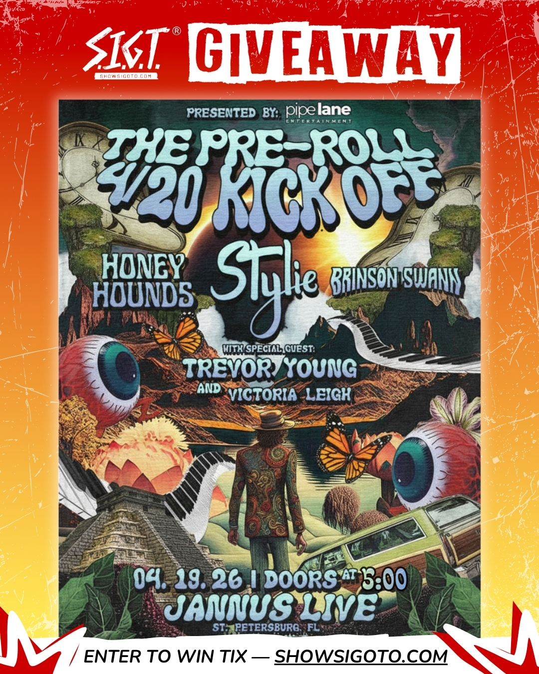 Stylie headlines The Pre-Roll 4/20 Kick Off at Jannus Live in St. Pete on Sunday, April 19, 2026, bringing a full night of feel-good music and elevated vibes to one of Florida’s most iconic venues! This stacked lineup also features Honey Hounds, Brinson Swann, Trevor Young, and Victoria Leigh, making it the perfect way to kick off 4/20 week. Enter below for your chance to win tickets, or secure yours now and be part of this unique celebration. Enter to WIN TICKETS BELOW or SECURE TICKETS HERE!